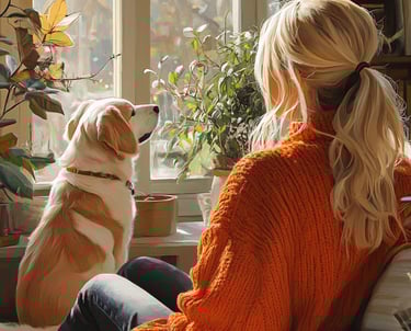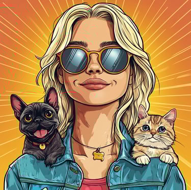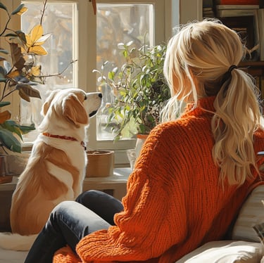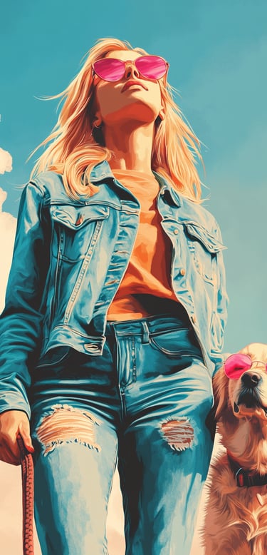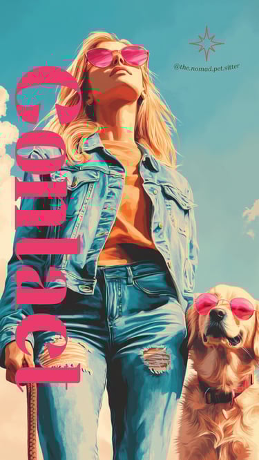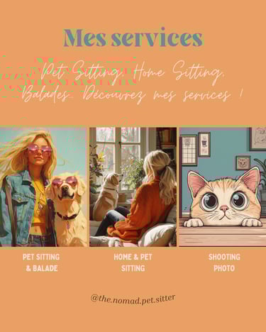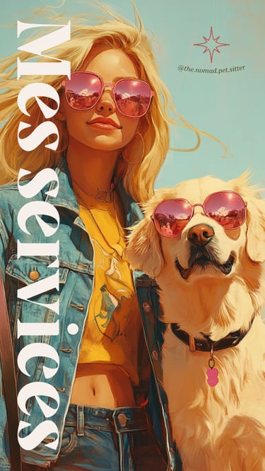 Recherche graphique pour illustrer les services d'une dog sitteuse, logo et ambiance visuelle pour la communication sur les réseaux sociaux.