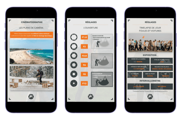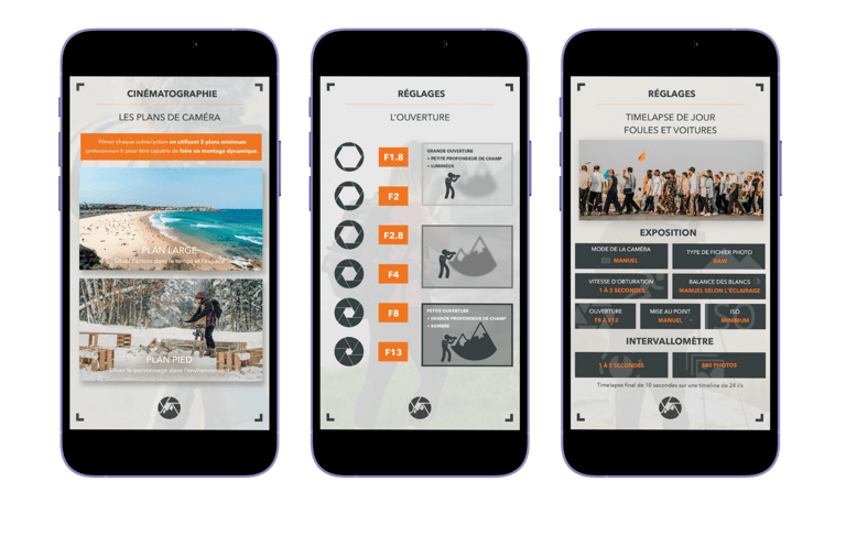 Création de fiche "aide-mémoire" pour une formation franco-canadienne autour de la photographie et la prise de vue en vidéo.