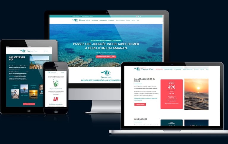 Création d'un site web pour un prestataire touristique basé à Hyères. Catamaran, sunset et baignade en mer autour de l'île de Porquerolles.